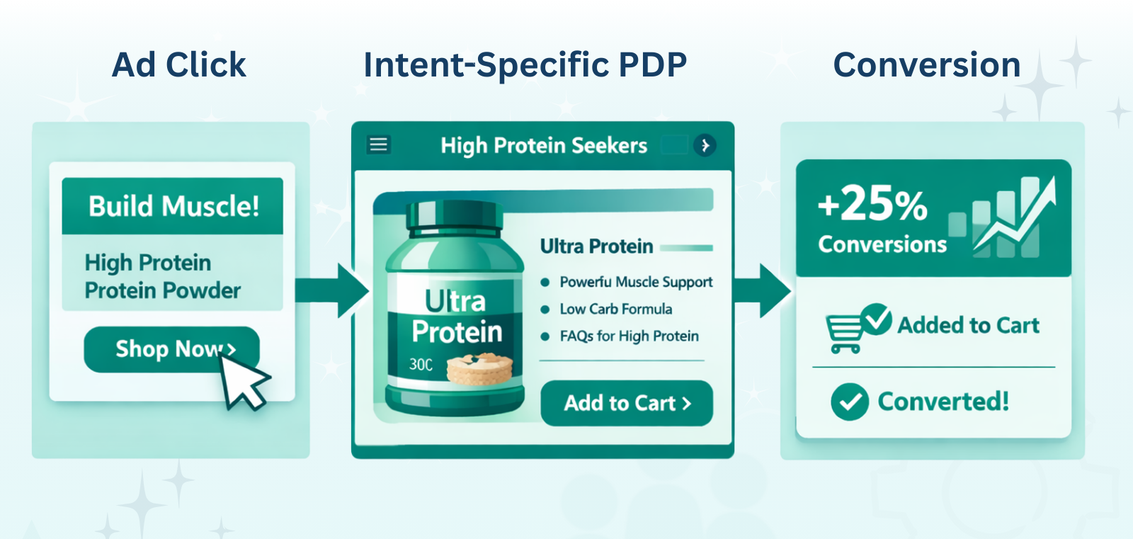 ShopperSense connects ad intent directly to tailored PDP content to ensure every shopper lands on a product page that speaks precisely to why they clicked the ad, instead of a generic product page. This improves relevance, reduces bounce, and boosts conversions by aligning the ad promise with the on-page experience.